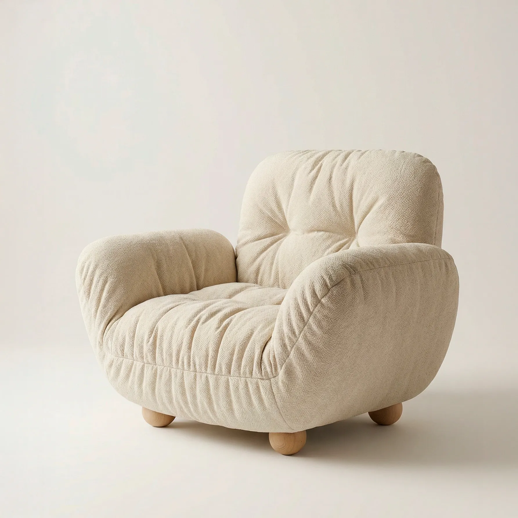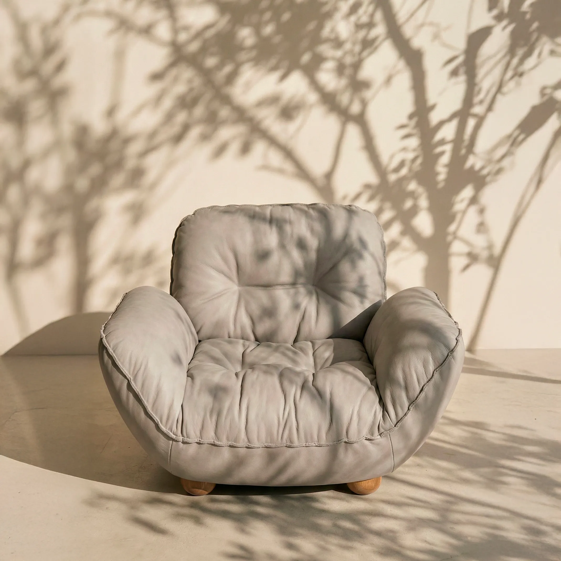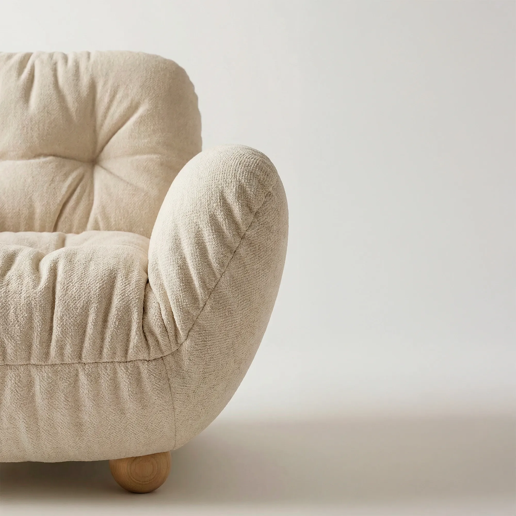 Моей задачей было создать объект, который ощущается как теплое объятие. Мы намеренно выбрали очень большой, щедрый формат, чтобы внутри кресла можно было буквально потеряться. Но чтобы оно не выглядело слишком тяжелым, мы добавили эти круглые, почти мультяшные ножки. Они привносят легкость и делают образ завершенным.